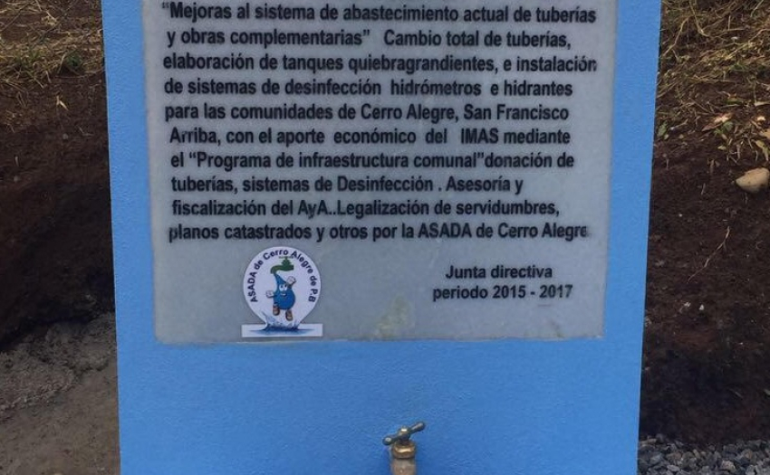 En un trabajo articulado entre el Instituto Mixto de Ayuda Social (IMAS), el Instituto Costarricense de Acueductos y Alcantarillados (AyA) y la ASADA de Cerro Alegre se actualizó el sistema de acueducto de la localidad que beneficiará a unos 332 abonados.