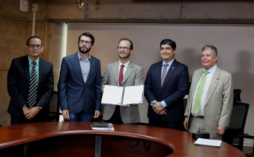 Los alcaldes Marcel Soler y José Manuel Ulate junto al Director Ejecutivo del Sinirube, Erikson Álvarez Calonge, y al Ministro de Desarrollo Humano e Inclusión Social y Presidente Ejecutivo del IMAS, Juan Luis Bermúdez, formalizaron esta alianza. El Presidente de la República, Carlos Alvarado, participó como testigo de honor.