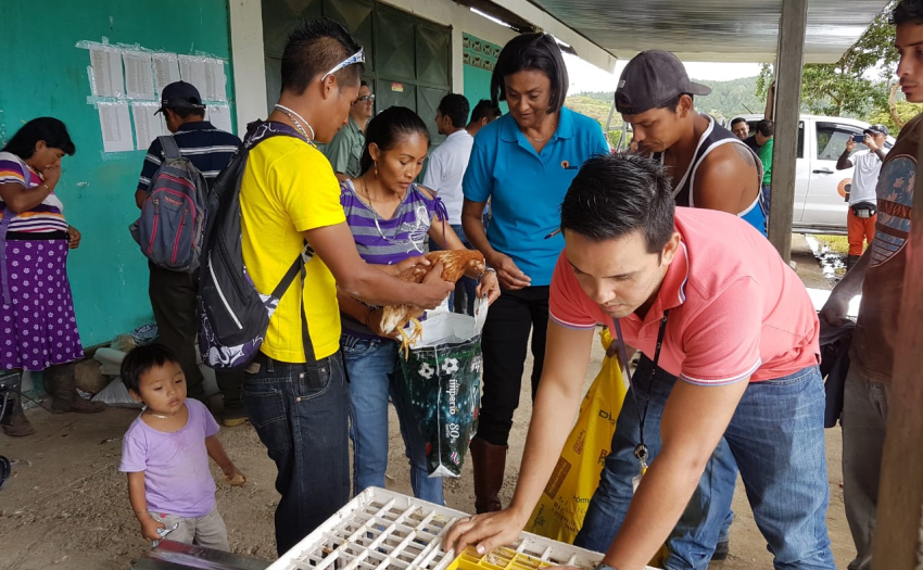 Nueve de las familias recibieron 46 kilos de semilla de frijol, otras cuatro 550 semillas de banano o plátano, además, se distribuirán 60 gallinas ponedoras entre tres jefas de hogar, el alimento y las vitaminas, así como los materiales y herramientas para que construyan sus granjas avícolas.