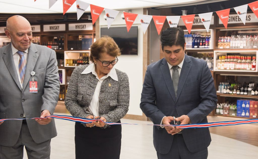 El Director Ejecutivo de AERIS Costa Rica Rafael Mencía, la Ministra de Desarrollo Humano e Inclusión Social y Presidenta Ejecutiva del IMAS María Fullmen Salazar, y el Presidente de la República Carlos Alvarado Quesada, inauguraron el nuevo espacio comercial. Las tiendas duty-free que administra el IMAS son las únicas libres de impuestos en los aeropuertos internacionales.